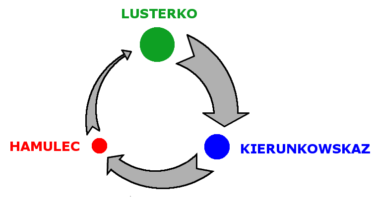 lusterko -> kierunkowskaz -> hamulec -> lusterko.